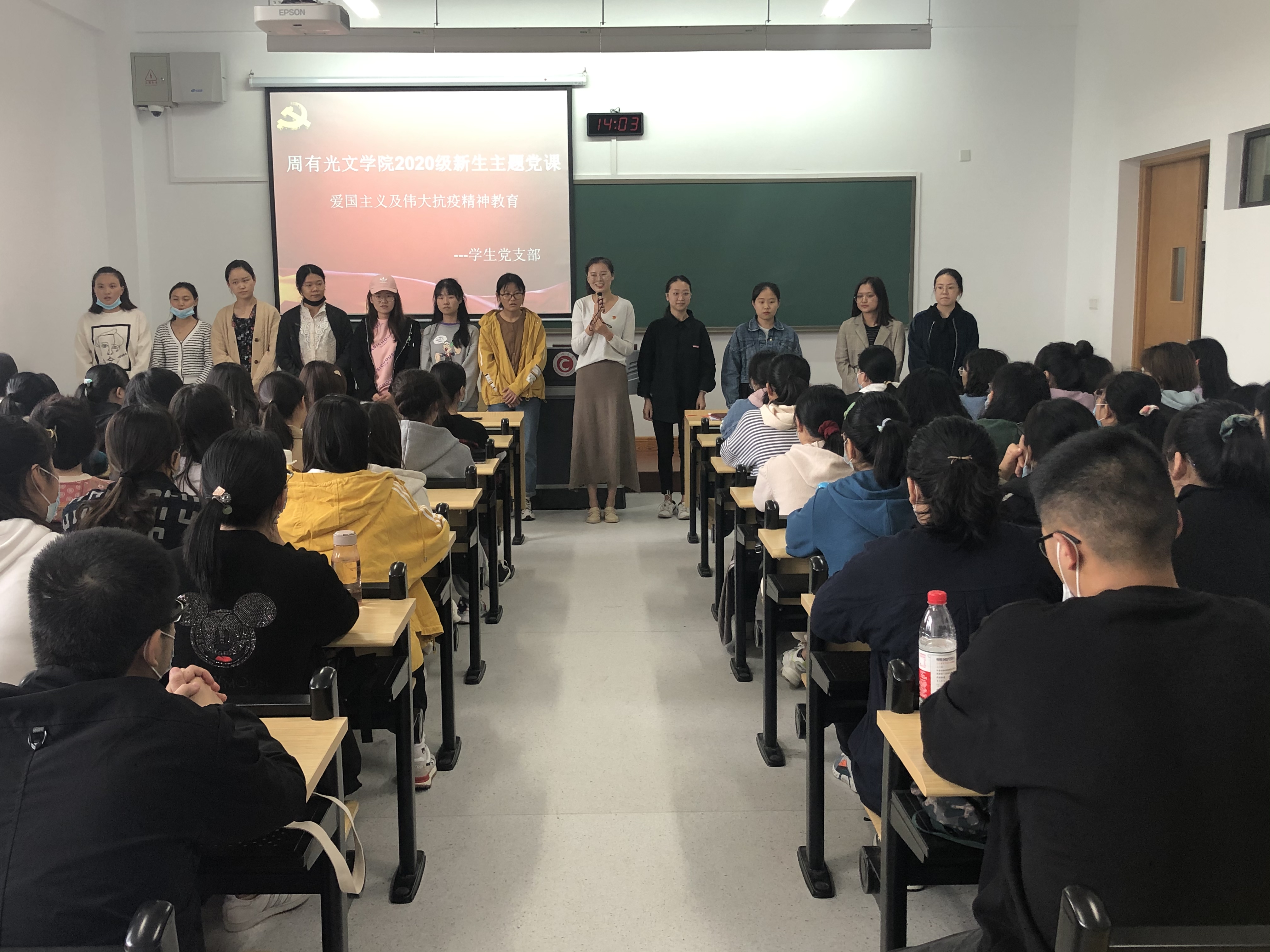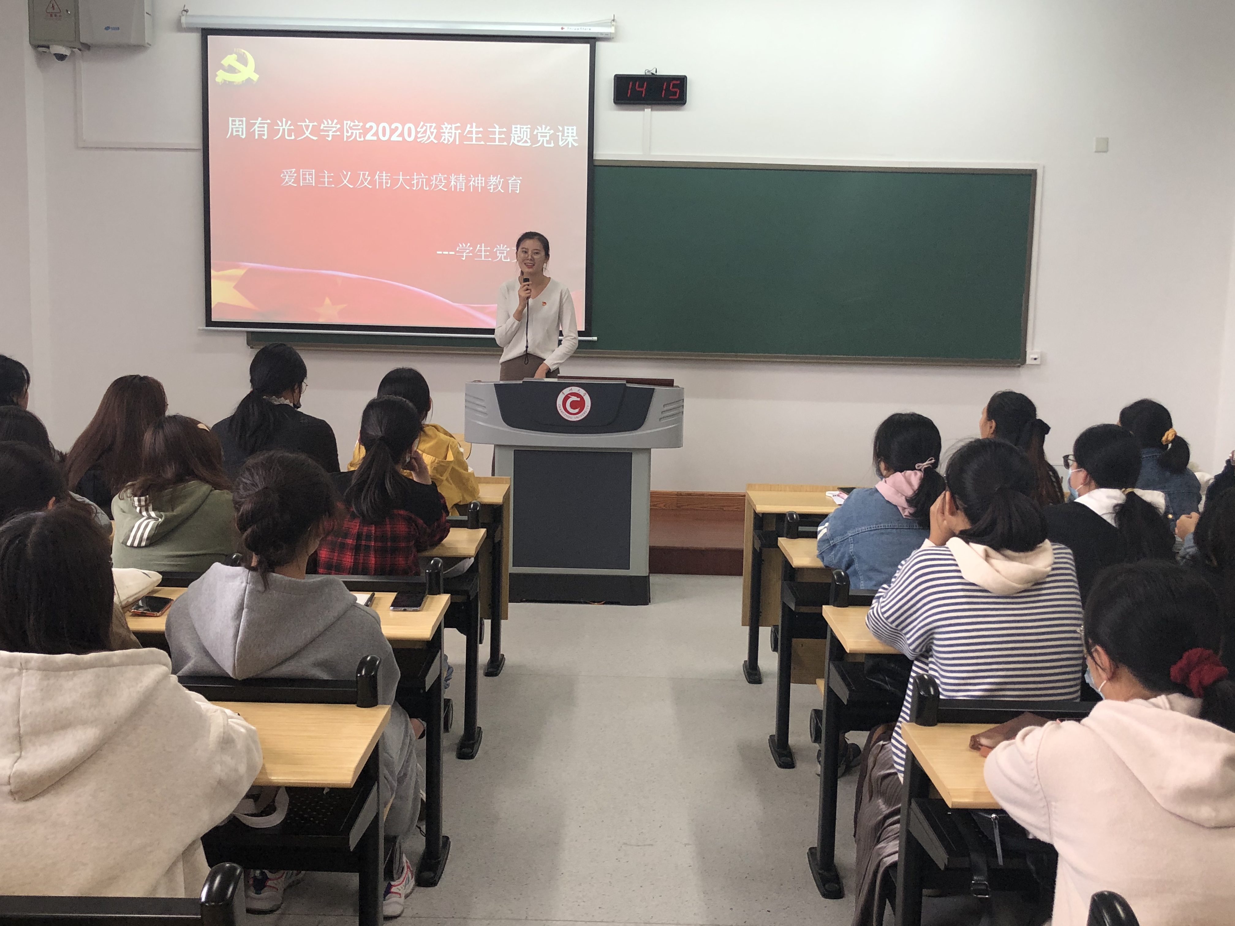 近日,在新生入学集中教育之际,成人直播 学生党支部在X218为2020级新生集中开设了入学后的第一堂主题党课,爱国主义及伟大抗疫精神教育。主题教育活动由成人直播 学生党支部书记杜焕主持。