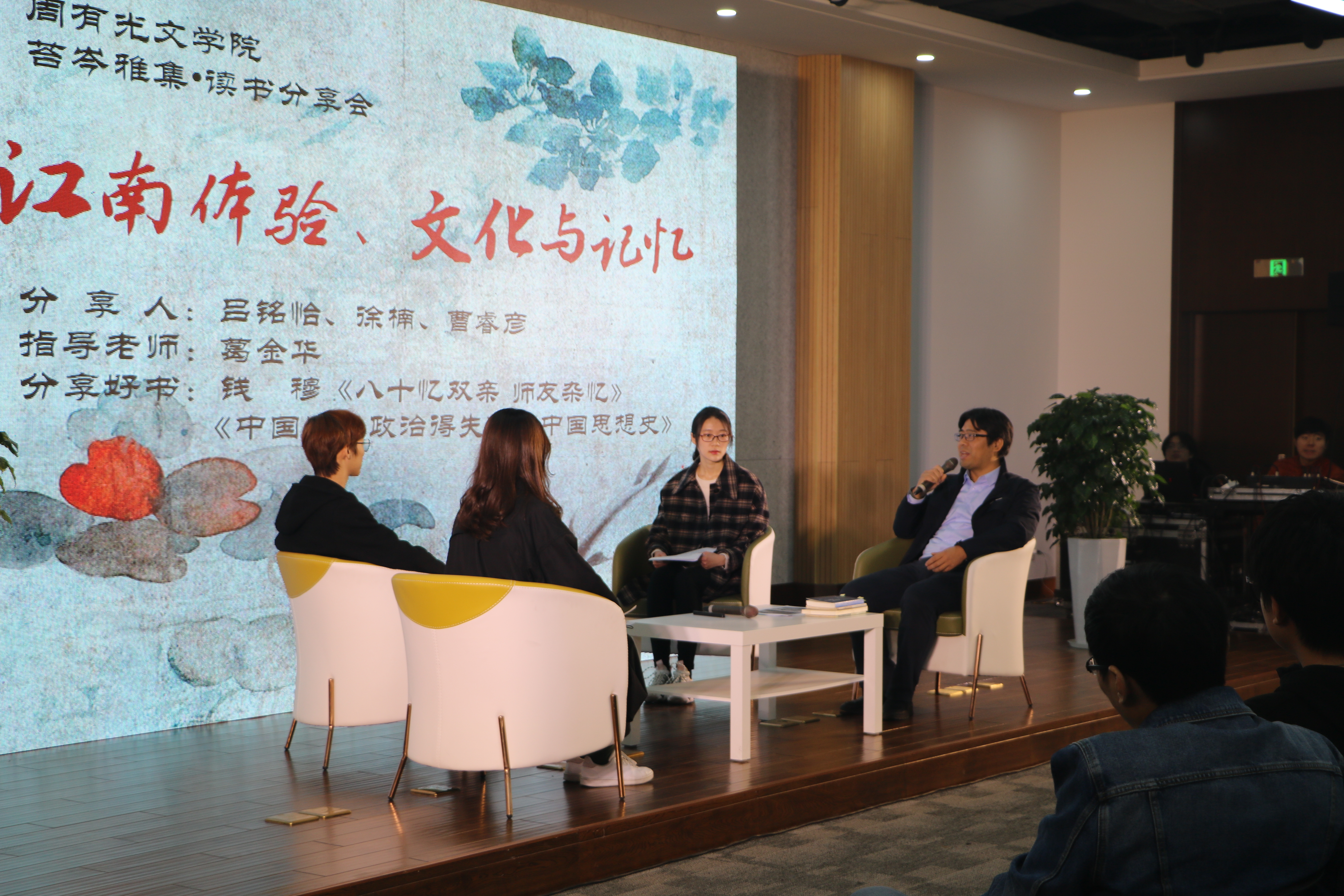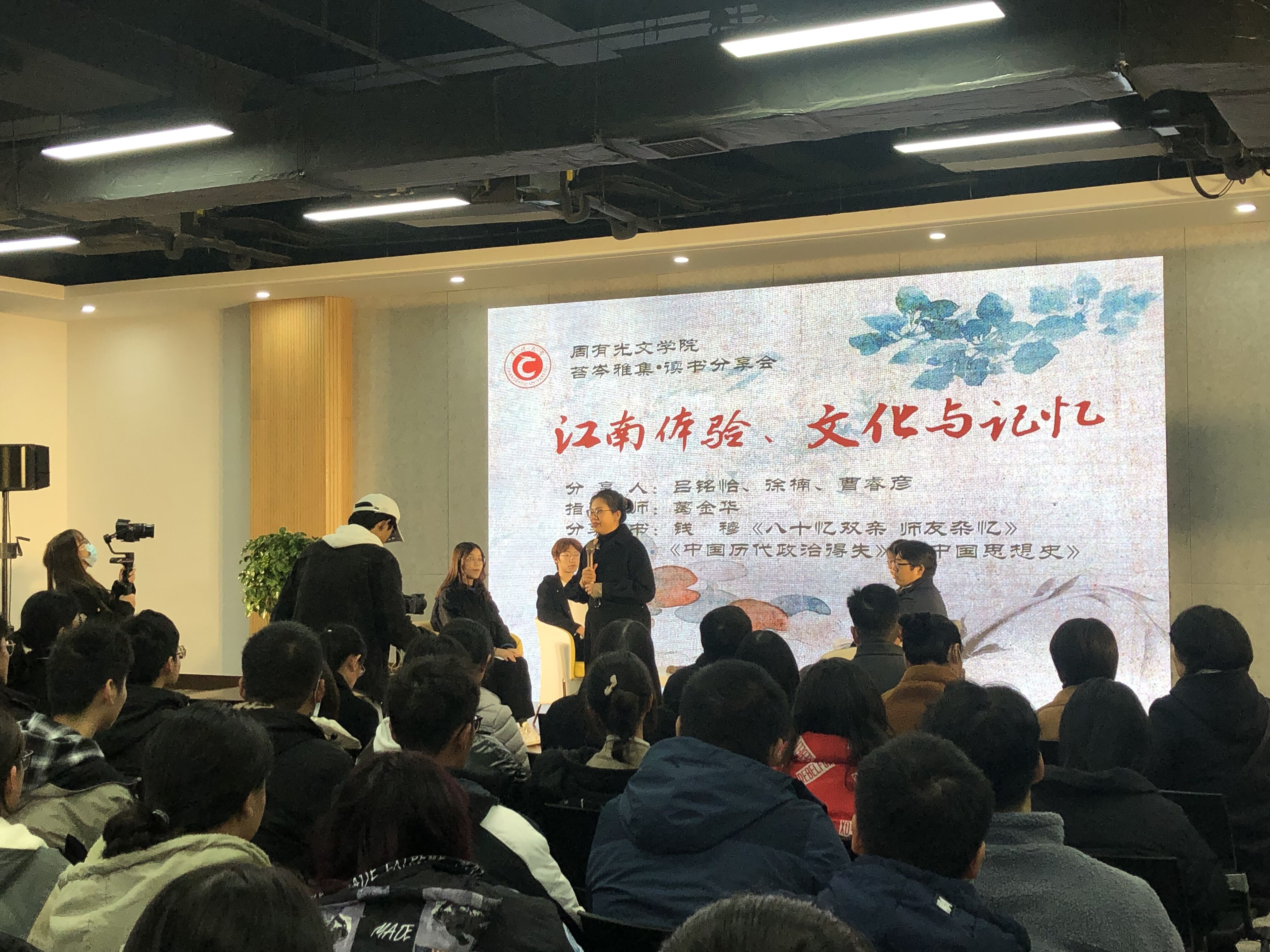 12月2日下午,成人直播 苔岑雅集·读书分享会在立言楼4楼报告厅顺利举行。本次读书分享会主题为“江南体验、文化与记忆”,由学院副院长葛金华老师带领三位同学分享读书心得,分享书目为钱穆先生的《八十忆双亲 师友杂忆》、《中国历代政治得失》、《中国思想史》。会议由院长助理、中文系主任王丹老师主持,学院全体教师及2020级学生参加。