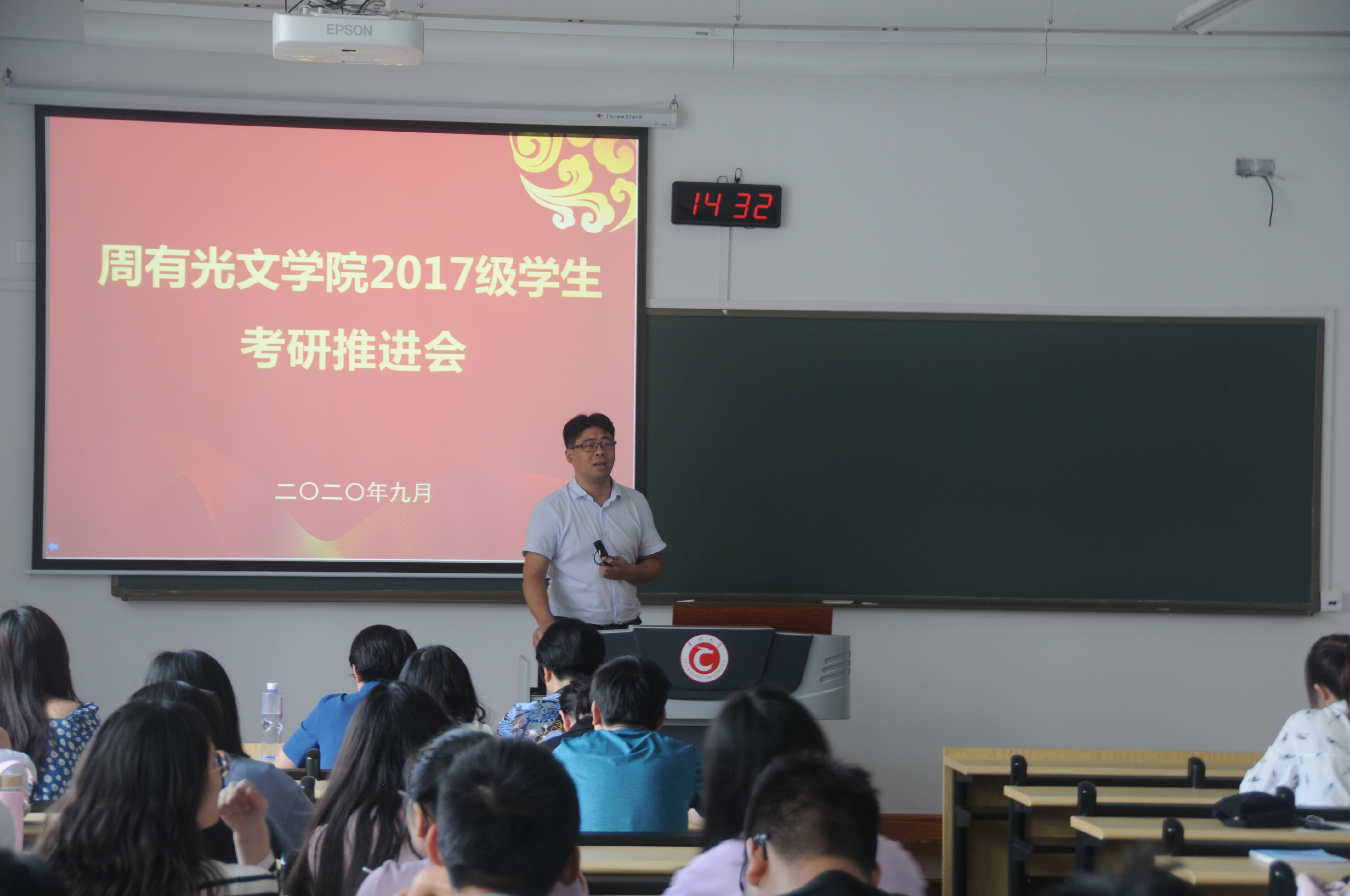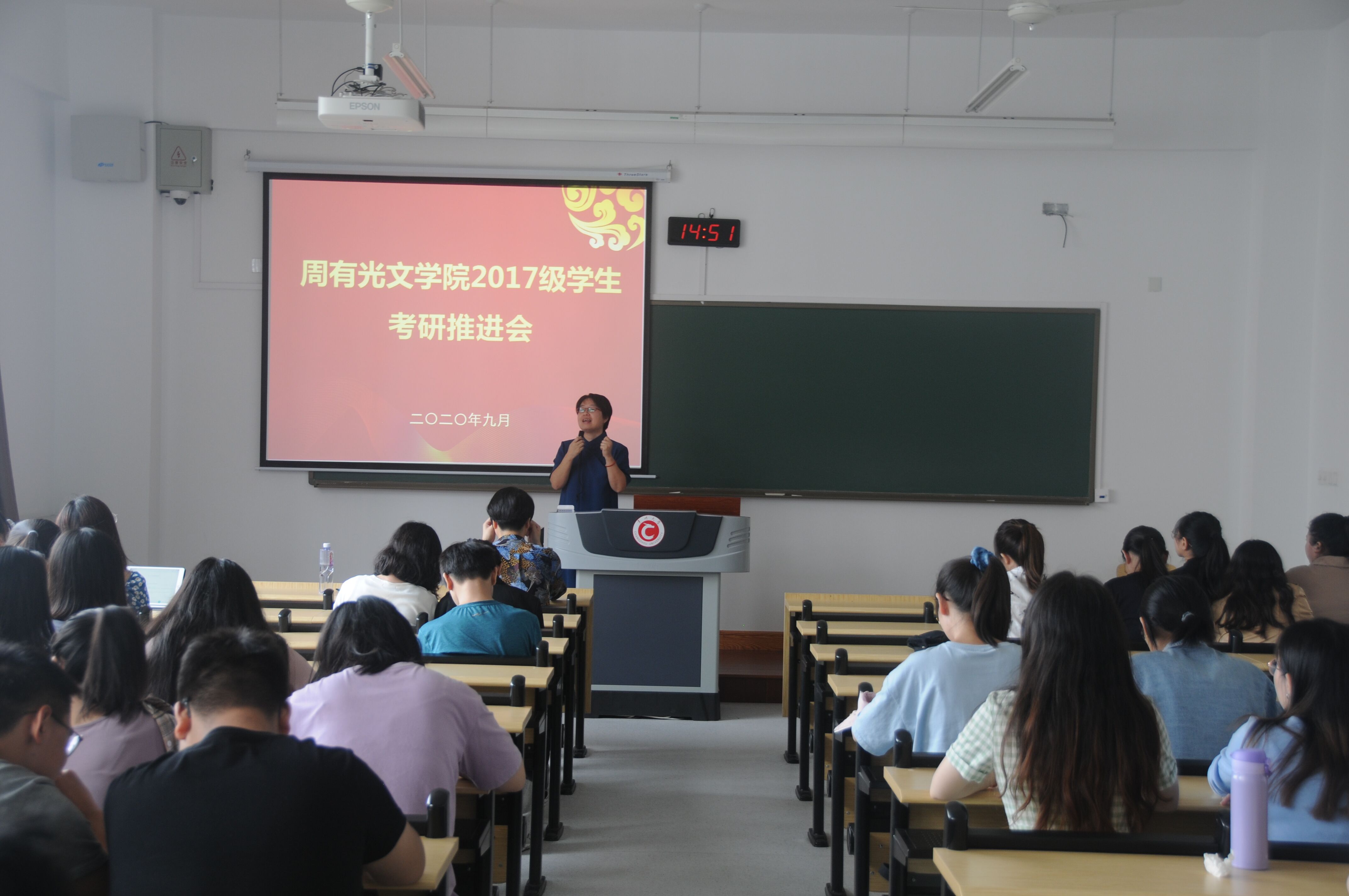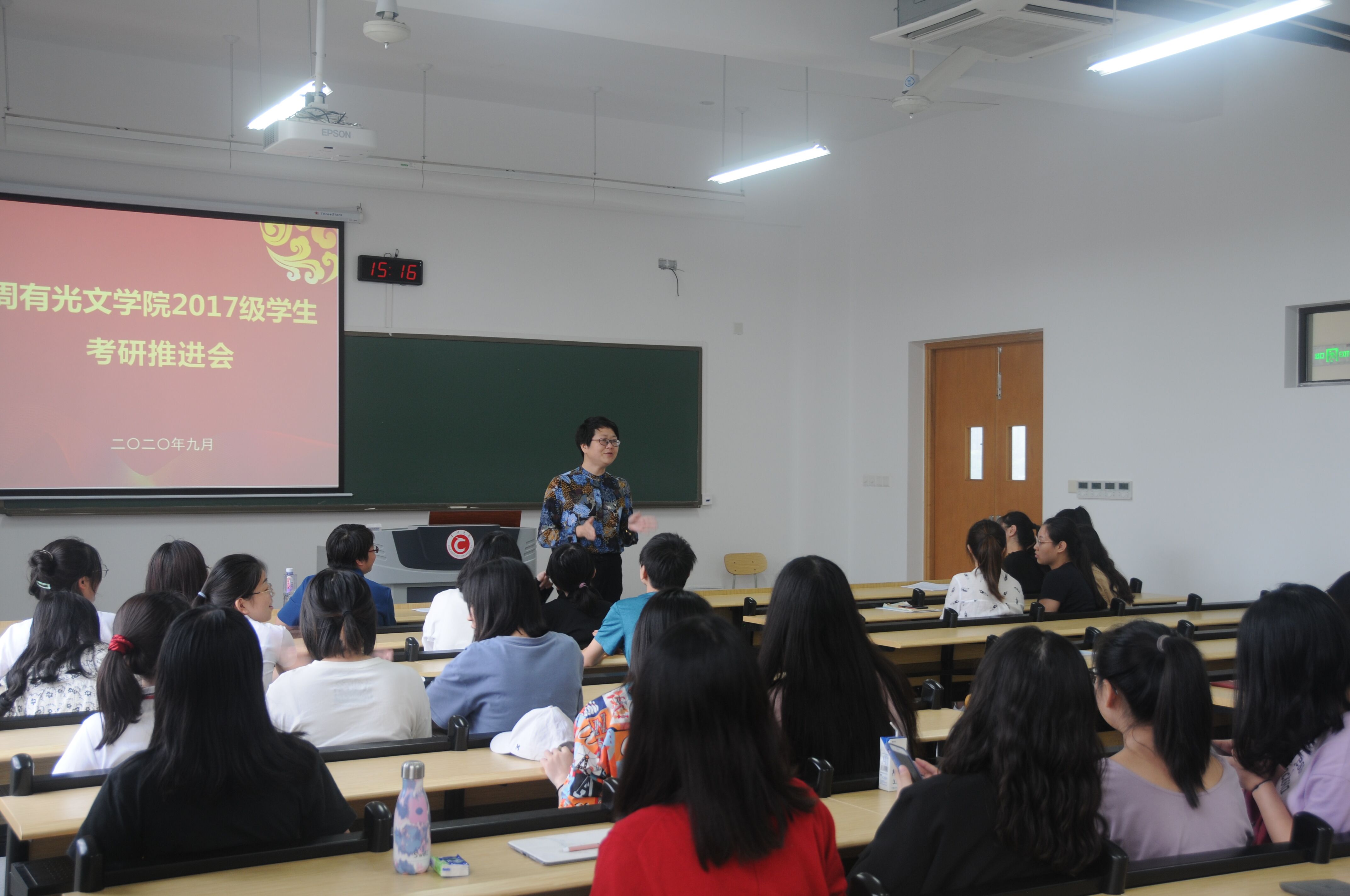 本科生考研升学作为高质量人才培养和高质量毕业生就业的重要标志,受到全校上下的广泛重视。9月16日下午,成人直播 在成人直播 西太湖校区立德楼202教室组织开展2017级学生考研专项推进会。学院近70位拟报考研究生的学生、校心理健康教育中心蔡亚敏老师、院党总支书记焦洁庆、副院长葛金华参加了会议。