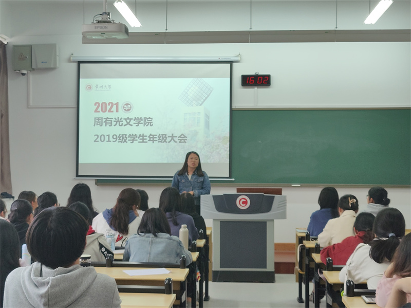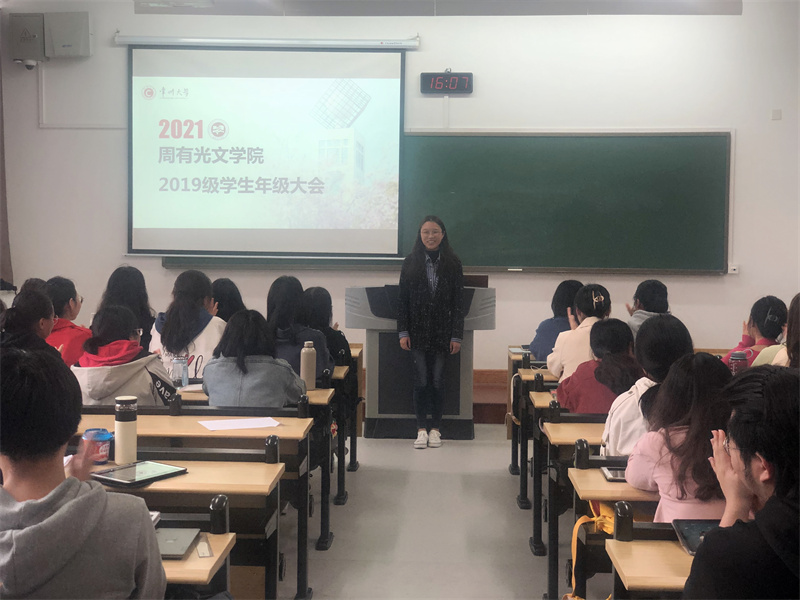随后,辅导员徐竹君在会上表达了对2019级全体学生的殷切期盼与美好祝愿,同时敦促全体学生继续努力学习、积极进取,与文学院一同进步、共同成长。