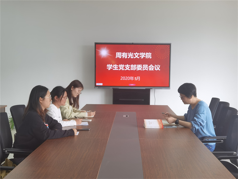 5月8日下午,成人直播 学生党支部在立言楼334会议室召开支委会,学生党支部书记杜焕、党员严佳丽、党员展望参加会议,会议由党总支书记焦洁庆主持。