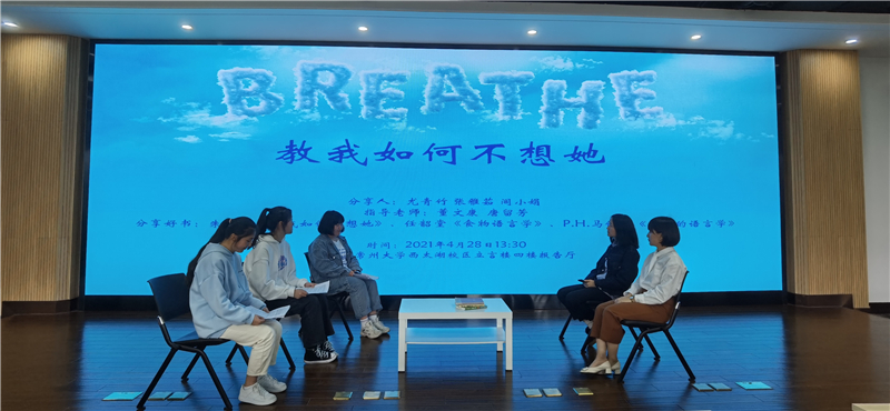 4月28日下午,成人直播 苔岑雅集·读书分享会在立言楼4楼报告厅顺利举行。本次读书分享会主题为“教我如何不想她”,指导老师董文康、唐留芳带领三位20级同学尤青竹、张雅茹、闾小娟分享读书心得,分享书目为朱晓农《教我如何不想她》、任韶堂《食物语言学》、P.H.马修斯《缤纷的语言学》。会议由院长助理、中文系主任王丹老师主持,学院全体教师及2020级学生参加。