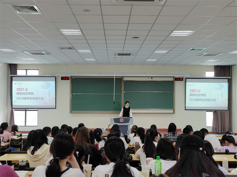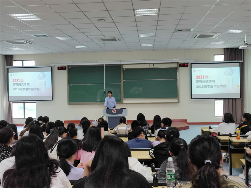 5月11日下午,成人直播 在立德楼X8阶召开2018级学生年级大会,会议由学院党总支书记焦洁庆主持,学院副院长葛金华、学生党支部2021届毕业生代表杜焕、赵景、孙燕新、王珺璇参加会议。