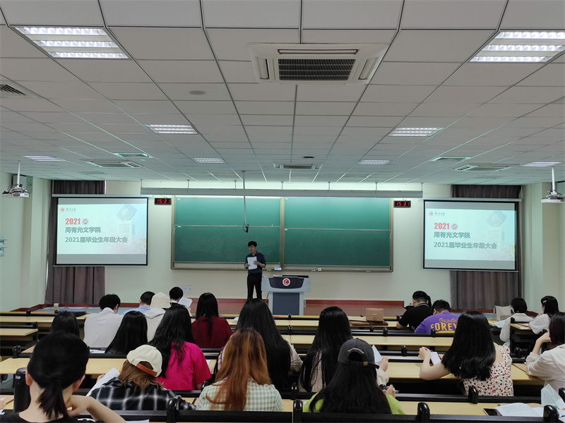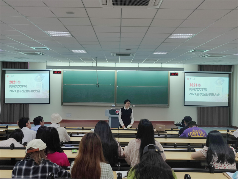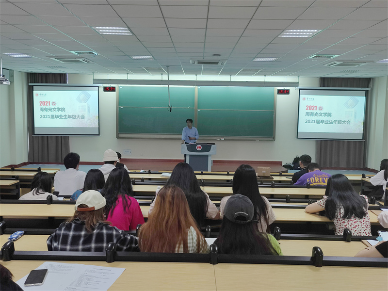 5月11日下午,成人直播 在立德楼X3阶召开2021届毕业生年级大会,会议由学院党总支书记焦洁庆主持,学院副院长葛金华、院长助理王丹、汉语言文学专业负责人付用现、各毕业班班主任参加会议,会议同时邀请商学院辅导员韩婷婷老师作嘉宾,讲解就业相关事宜。