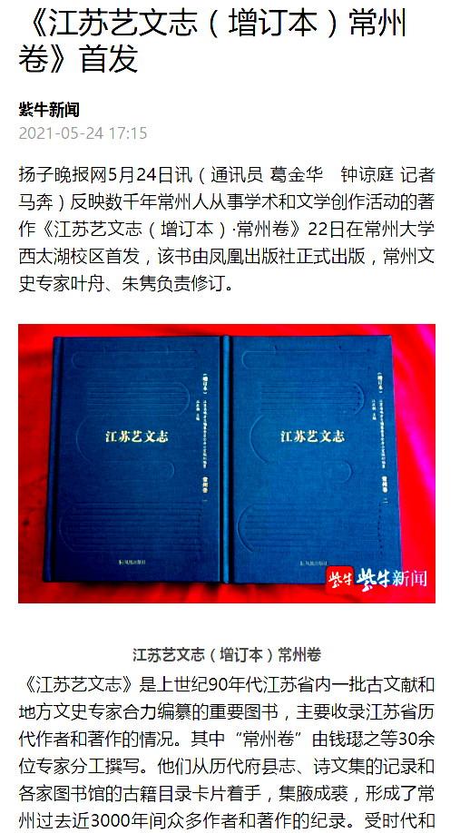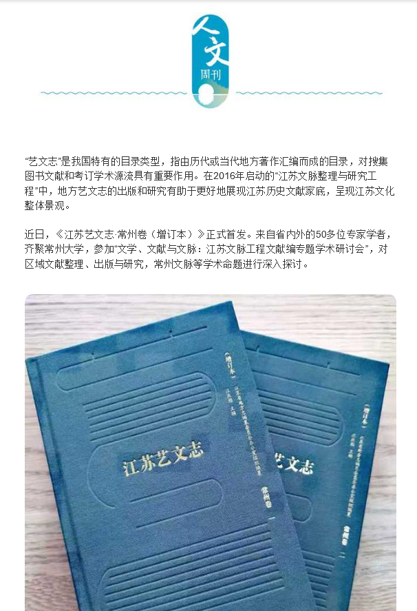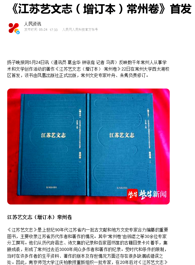 近日,《新华日报》人文周刊、交汇点,人民网、扬子晚报网等媒体纷纷报道由成人直播 承办的“文学、文献与文脉:《江苏艺文志·常州卷(增订本)》首发式暨江苏文脉工程文献编专题学术研讨会”,对由成人直播 周有光语言文化学术研究项目资助成果《江苏艺文志·常州卷(增订本)》的立项、研究和出版情况进行了深入报道,也对成人直播 协同长三角地区兄弟院校和研究机构共同服务江南文化建设、江苏文脉工程等的相关工作进行了报道。