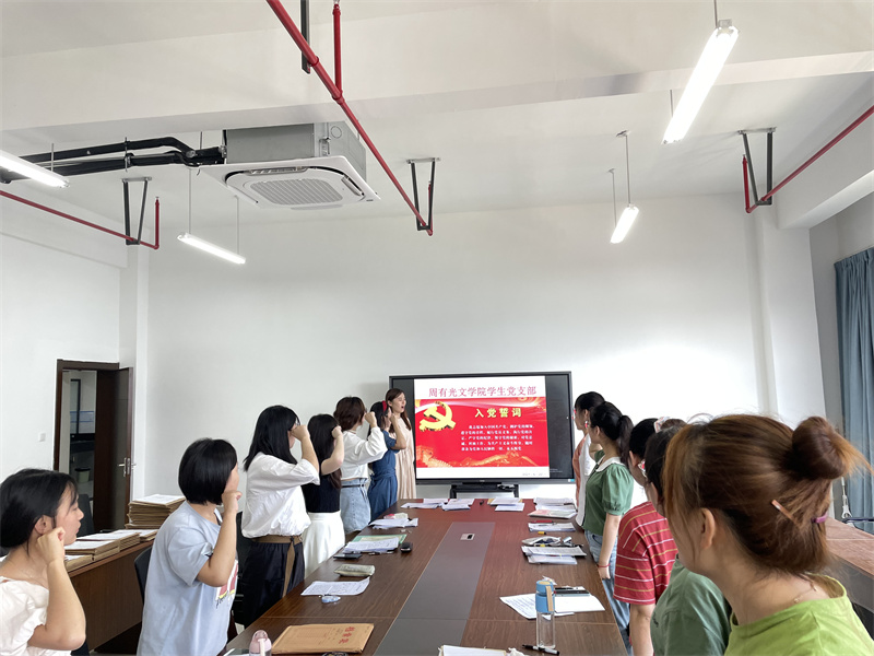 随后,在学生支部书记杜焕的带领下,全体党员同志一起面向党旗庄严宣誓。