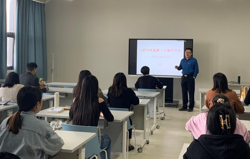 10月27日下午,成人直播 在立言楼349会议室召开“历史为何选择了中国共产党”的主题党课,党课由教工支部党员吕杨老师主讲,党总支书记焦洁庆和学院全体师生党员参加会议。