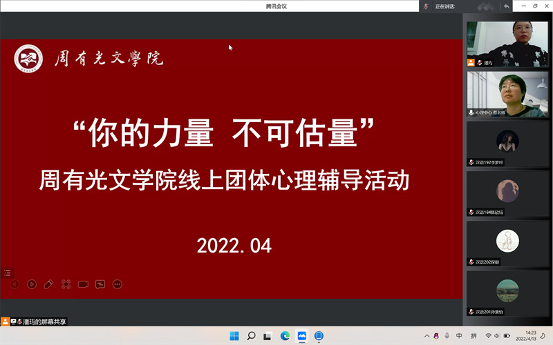 为缓解疫情期间全体同学的焦虑情绪,引导学生培养热爱生活、宅校不宅心的积极心态,增进师生之间的情感,4月13日下午,成人直播 邀请成人直播 心理健康教育与研究中心蔡亚敏与李秋云老师携手进行线上心理团体辅导活动,学院辅导员潘玙主持,全体学生参与。