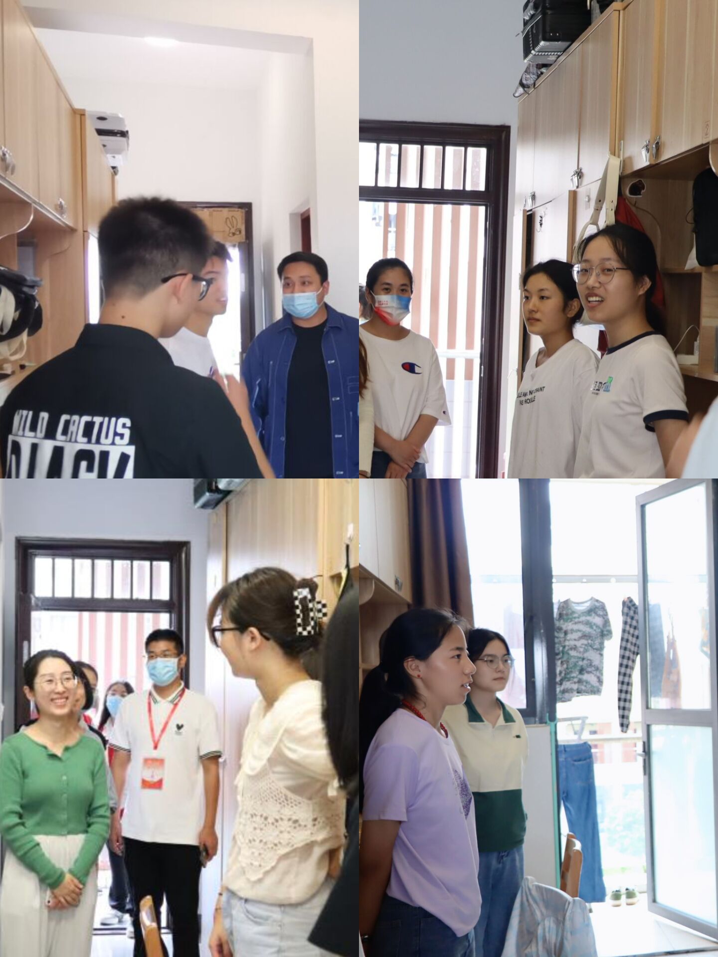 为及时了解新生进校后的整体情况,帮助他们尽快适应新环境,9月15日、9月17日下午,成人直播 党总支书记焦洁庆、院长葛金华、院长助理董文康、新生班主任储小静、薛欣欣、刘磊、王春晓、学工办主任张燕红以及辅导员一同前往新生宿舍,为他们带去学院的问候。