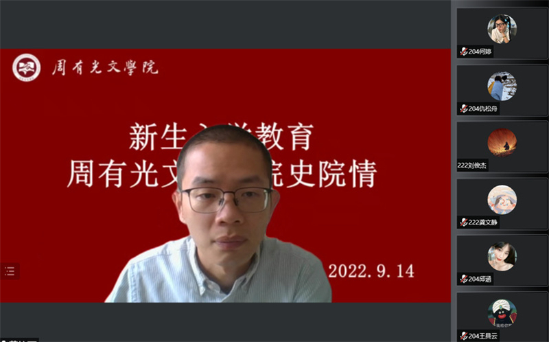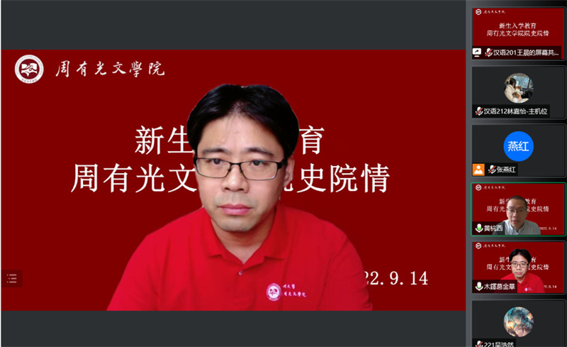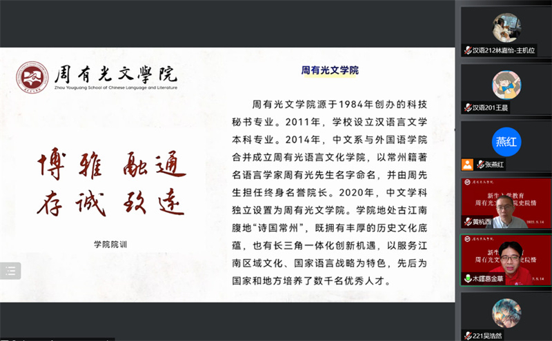 9月14日上午,成人直播 分工会以线上讲座方式开展了院史院情教育活动。本次讲座由院长葛金华担任主讲,学工办主任张燕红、辅导员老师潘玙、吕俊红、程向君及全体新生参加了讲座,院长助理黄杭西主持讲座。
