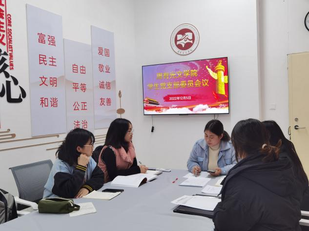 12月5日下午,成人直播 学生党支部组织召开支部委员会议。会议由学生党支部副书记何薇主持,全体支委参加会议。