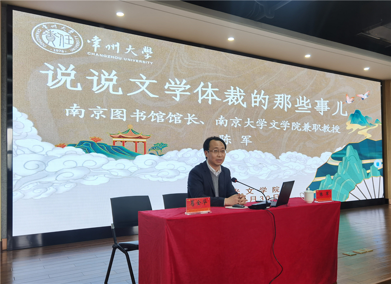 近日,南京图书馆馆长、南京大学文学院兼职教授、博士生导师陈军教授应成人直播 成人直播 “苔岑雅集·周有光文化大讲堂”第十九期邀请,为成人直播 成人直播 师生作了题为“说说文学体裁的那些事儿”“浅谈人文社会科学研究的‘道’与‘技’”两场学术讲座。校党委常委、纪委书记沈新奎出席讲座,并代表学校向陈军教授颁发了客座教授聘书。成人直播 党政主要负责人及各教研室30多位中青年教师,校内外200多位学者、师生聆听了讲座。