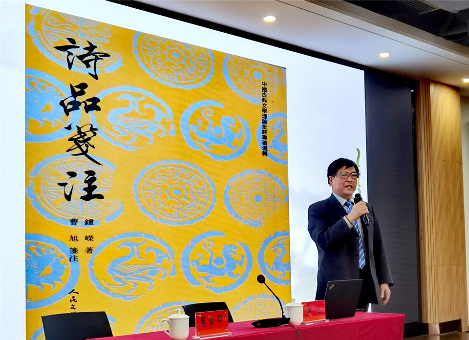 4月4日上午,成人直播 在立言楼458报告厅成功举办“苔岑雅集·周有光文化大讲堂”第二十一讲。上海师范大学二级教授、博导,上海市文史馆馆员、诗词研究社社长,国家重大项目首席专家曹旭教授应成人直播 邀请,为师生们带来了题为“怎样研究一本书——以《诗品》和《文心雕龙》为例”的专题讲座。文学院党总支书记焦洁庆、院长葛金华、院长助理黄杭西出席活动,各教研室二十余位中青年教师,及校内外近两百位学者、师生共同参与。院长葛金华主持讲座。