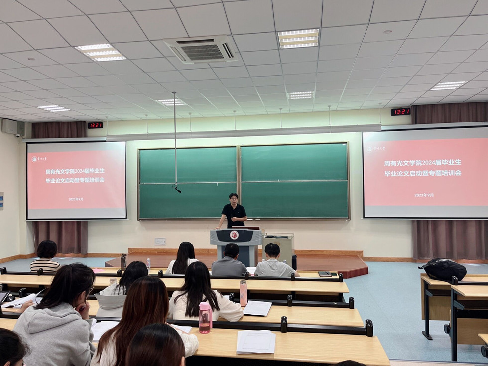 付用现老师介绍了学校教务处对2024届本科生毕业论文工作的具体部署和相关要求,并就2024届毕业生的规模和导师需求等情况作了具体说明,强调了重要的时间节点和工作原则。