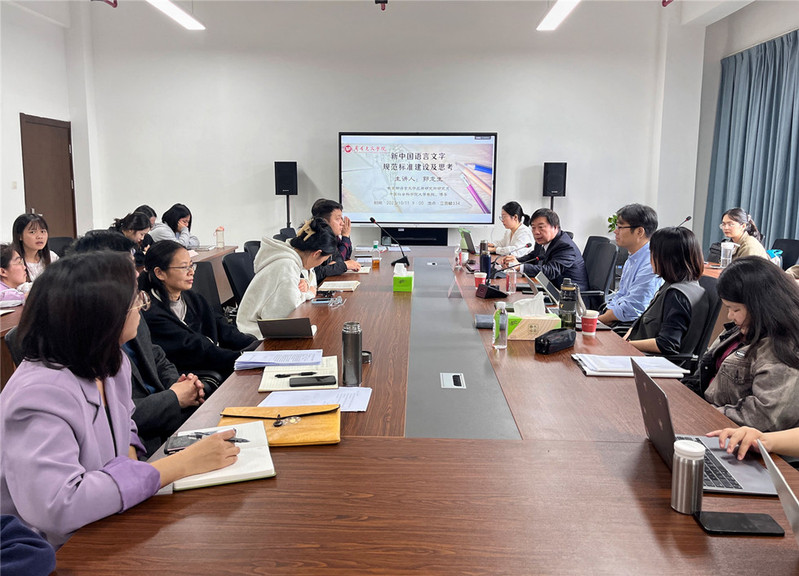 10月11日,成人直播 在立言楼334会议室成功举办“苔岑雅集·周有光文化大讲堂”第二十六讲。教育部语言文字应用研究所研究员,中国社会科学院大学教授、博士生导师郭龙生应邀为师生作了题为“新中国语言文字规范标准建设及思考”的专题讲座。院长葛金华、院长助理董文康、黄杭西出席活动,语言学教研室与现当代文学教研室教师、部分高年级学生等50多人参加讲座,葛金华院长主持讲座。
