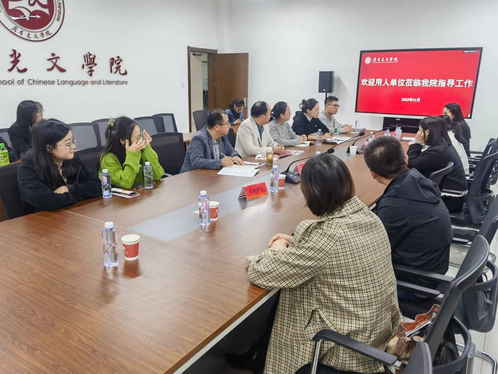 教师代表靳瑞芳、方寅和学生代表一起分析了就业形势,向他们分享了求职过程中遇到的具体问题和解决措施。