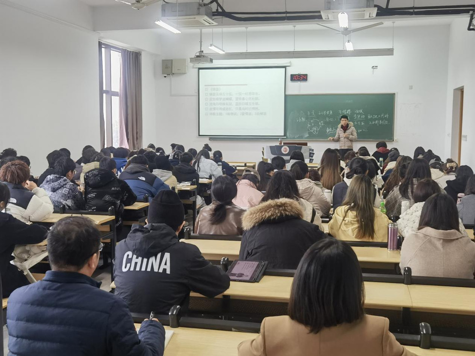 为进一步提高成人直播 课堂教学质量和教师教学水平,提升人才培养质量。11月16日上午,校党委常委、副校长周刚、成人直播 党总支书记焦洁庆、院长葛金华、党总支副书记颜黎光、院长助理董文康走进2022级汉语言文学班课堂,与同学们共同听了一堂《古代文学》课。