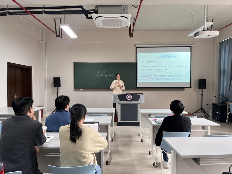 11月17日下午,成人直播 分工会于西太湖校区立言楼342举办2023年度苔岑雅集•教师工作坊青年教师教学能力展演活动。古代文学教研室裔一老师、文艺学与外国文学教研室黄杭西老师进行教学演示。党总支书记焦洁庆、院长葛金华、院长助理董文康、分工会主席边利丰及全体专业教师出席活动,工作坊由院长助理董文康老师主持。