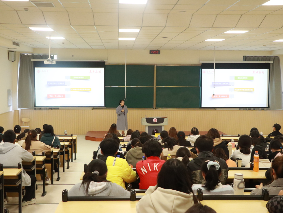 讲座中,苏扬婧从学校的资助工作体系、困难认定、资助项目介绍、大学生医保政策解读及相关资助活动等5个方面,全面细致地介绍了“奖、助、勤、贷、减、免、补”等各项资助政策的具体内容,同时向新生普及各种奖助学金的内容及申请条件、评定程序和发放流程等。苏扬婧在讲座中还就学生普遍关注的医保知识进行了普及,从费用及保险时限、保险待遇、医保报销等角度作了全方面介绍。