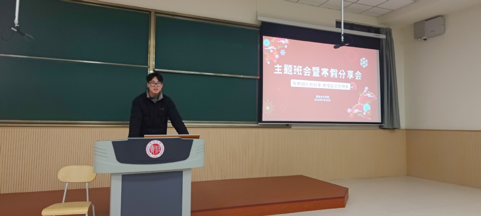 本次会议共分为四个环节。第一、第二环节分别是“总结上学期及寒假的学习生活”和“同学分享寒假的得与失”。程向君围绕相关学生工作,首先做了总体陈述;随后,各班同学对假期学习、生活进行了分享,并围绕相关工作进行了总结。张孟茹积极参与社会实践活动,体现了积极奉献社会的风尚;潘亦为主动报名三下乡活动,体现乡村振兴与个人发展息息相关等。同学们的假期充实而有意义,考驾照、做兼职、给长辈拜年、认真完成作业等,这些都体现了成人直播