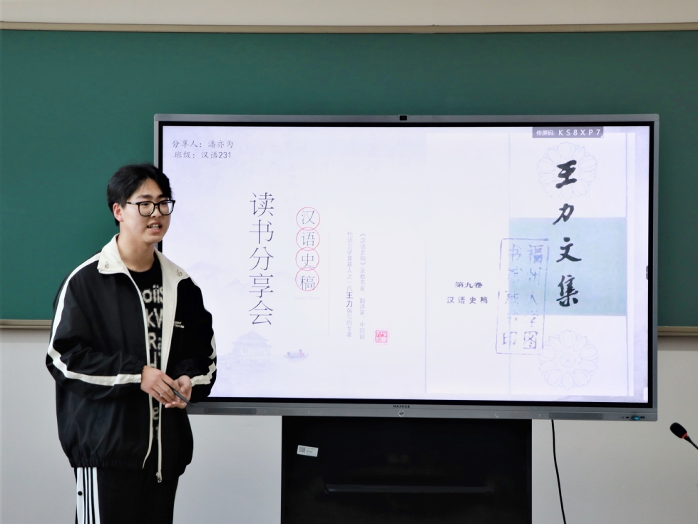 在分享环节,五位同学分别从不同角度对语言学相关书籍进行了精彩的分享。潘亦为同学分享了语言学大家王力教授的经典著作《汉语史稿》,带领大家领略了汉语历史发展的悠远历程。韩箫蔓同学分享了罗琼鹏、彭馨葭主编的《语言学》一书,探讨了语言的开放性、语言学流派、语言与思维等问题。胡紫娴同学分享了语言学经典著作《我们赖以生存的隐喻》,让我们重新认识了隐喻这一概念。崔吴彤同学从《巴别塔之犬》出发,结合心理语言学角度,阐释了巴别塔理论在人际沟通中的重要性。李欣燃同学则分享了赵元任的经典作品《语言问题》,对语言的定义、特征以及方言与标准语等问题进行了详细解读。