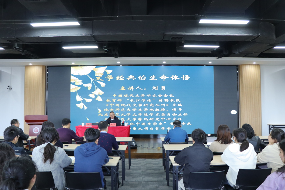 讲座中,刘勇教授从现代经典作家的个人经历及创作风格入手,通过回答“什么是文学经典”“为什么要读文学经典”“何为生命体悟的三个维度”等问题,分享了他对文学经典与生命体悟之间关系的思考。他深入分析了与现代经典作家相关的历史文献,结合自身生命体悟,对中国现代文学中的几位标杆人物,如鲁迅、萧红、孙犁、朱自清、张爱玲、沈从文等人的经典作品进行了深入解读和生动阐述。他认为,从生命体悟的角度解读文学经典,既能感受到作家个人的生命体悟、也能理解作家赋予角色的生命体悟,同时也可以丰富读者的生命体悟。讲座后,刘勇教授还从思想创新、技术表达、社会关切等三个方面,与青年教师交流、分享了科研经验与研究心得。