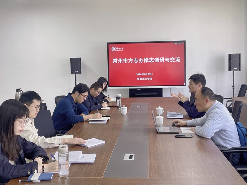 4月26日,常州市地方志办公室地方志工作处处长陈东哲、一级主任科员常云峰一行莅临成人直播 ,在学院334会议室针对成人直播 主持的《潞城街道志》《戚墅堰街道志》编纂工作进展作了深入调研,并就下一步工作推进作了专项指导。院长葛金华、院长助理黄杭西及编纂团队成员参加了会议。