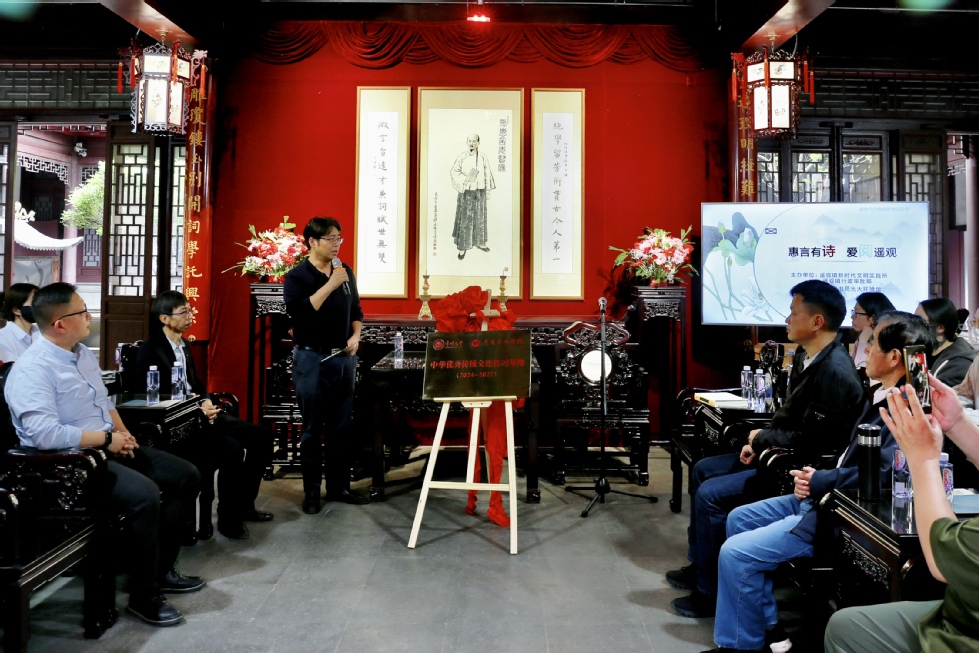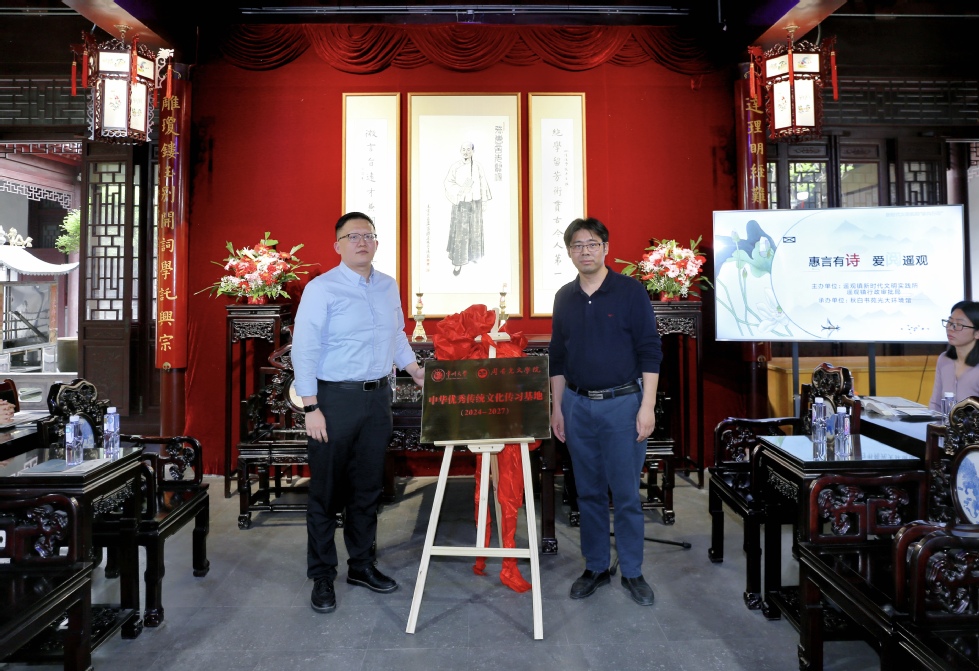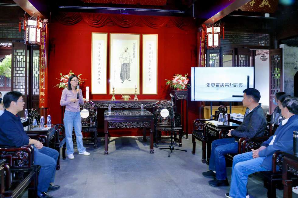 活动中,牟晓彤委员和葛金华院长分别致辞并为“中华优秀传统文化传习基地”揭牌。葛金华院长向张宏成副会长赠送了成人直播 教师编撰的《江苏地方文化史·常州卷》。王风丽老师作了题为“张惠言与常州词派”的专题讲座,详细讲解了常州词派的历史脉络与发展过程,以及张惠言在常州词派、阳湖文派发展中的独创精神和突出贡献。葛金华院长作活动总结,指出张惠言与常州先贤共创的文学流派不仅在清代影响巨大,其援经入词、高扬词体的思想,事事当争第一流的追求,更有超越性,影响远及当代。所以在张惠言纪念馆讲张惠言,建传习基地既切题,又有意义。
