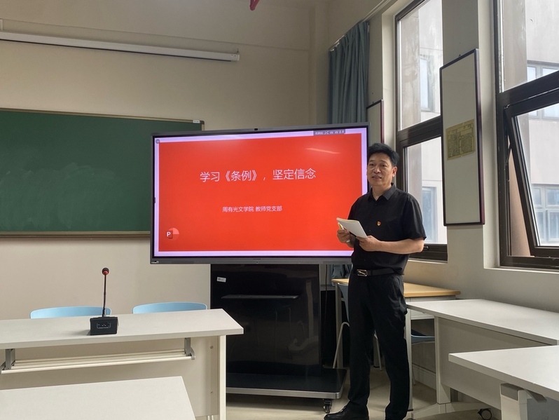 5月21日下午,成人直播 教工党支部于立言楼342会议室开展题为“学习《条例》,坚定信念”的党纪学习教育专题党课。党课由支部书记付用现主讲,学院领导班子和全体教工党员参加学习。