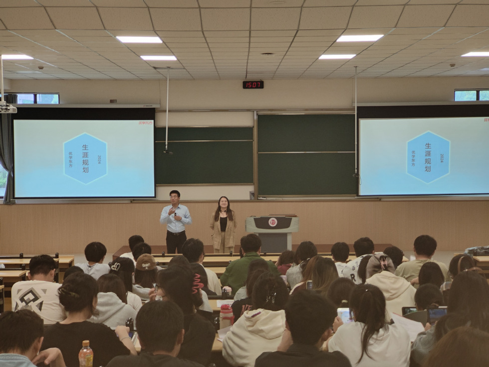 5月30日下午,成人直播 在西太湖校区立功楼二阶成功举办职业生涯规划暨就业指导讲座。优学东方职能中心总监于海阔,优学东方行政负责人、2015届优秀校友李晨受邀分享,学院大三年级全体学生参加讲座,辅导员程向君主持讲座。