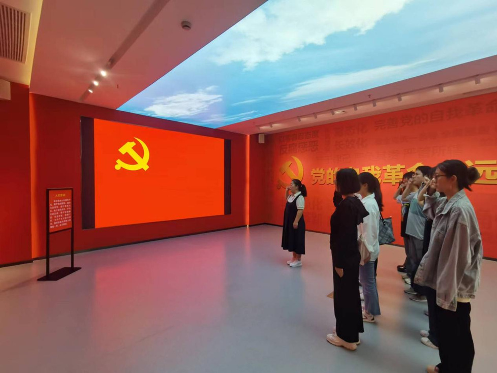 活动中,师生党员在讲解员的带领下,依次参观监察文化馆内“历史之光”“奋斗之光”“时代之光”三个展厅。大家在了解中国传统监察制度的历史演变、重温中国共产党领导下的监察探索与发展的同时,近距离感受了新时代纪检监察体制改革的实践风采和高质量发展成果。活动尾声,学生党员在党旗下庄严地重温入党誓词,表达了对党的无限忠诚和崇高敬意。