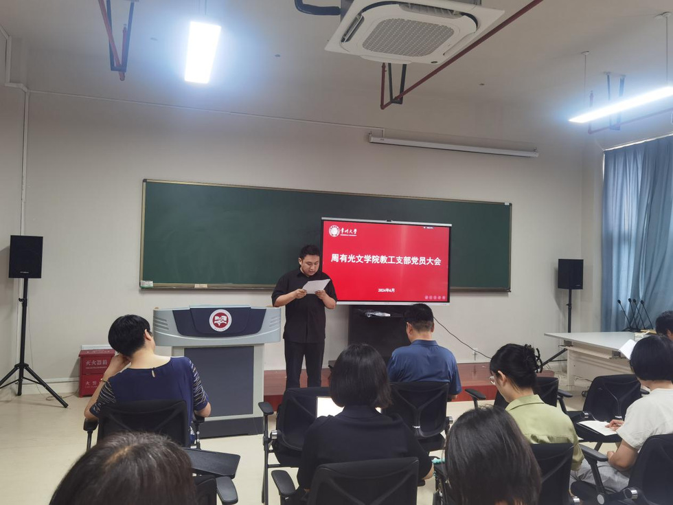 2024年6月20日下午,成人直播 教工党支部召开2024年上半年接收预备党员大会。会议讨论通过了刘磊同志的入党事宜。全体教工党员参加会议,会议由党支部书记付用现主持。