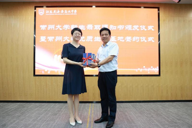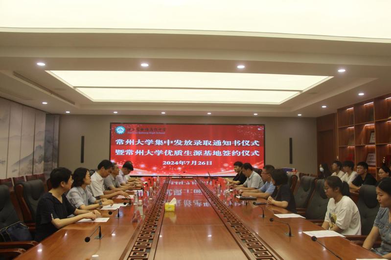 7月26日下午,校长陈海群带队赴江苏省曲塘高级中学、江苏省海安高级中学,为考入成人直播 的2024级本科新生现场颁发录取通知书。校纪委原副书记缪国斌,学生处、资产经营管理公司相关负责人、海安地区招生负责人陪同前往。