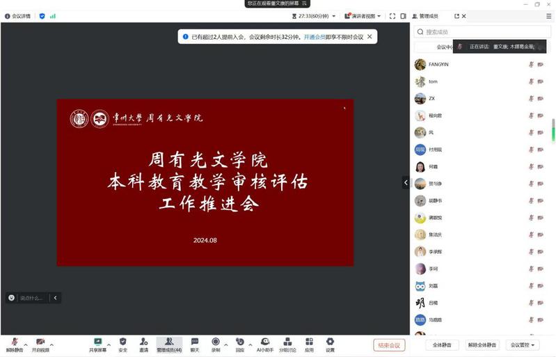 为深入推进新一轮本科教育教学审核评估工作,落实自评自建阶段各项工作任务,8月26日晚,成人直播 召开线上本科教育教学审核评估工作推进会。学院领导班子、全院教职工参加会议。会议由院长助理董文康主持。