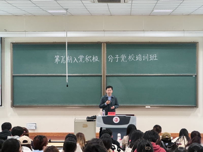 ▲瞿秋白政府管理学院党总支书记潘道广以《争做新时代“四有”好青年》为题讲授专题党课