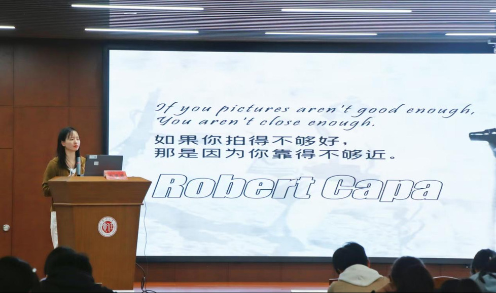 赵雅婷聚焦新闻写作的核心技巧和规范,从内容策划、素材搜集到行文结构、语言风格等方面的要求。她通过生动的实例,强调了新闻六要素在新闻写作的关键作用,并细致剖析了倒金字塔结构在新闻稿导语、主体、总结等部分的应用特点。她指出新闻写作的语言风格应简洁、客观、准确和正式。摄影能力培训环节,赵老师从单反相机摄影基础知识讲起,结合视频演示和一系列精彩的活动摄影作品,详细讲授了新闻摄影的实用技巧。同时,她还简要介绍了新闻摄影前期准备与后期处理流程。