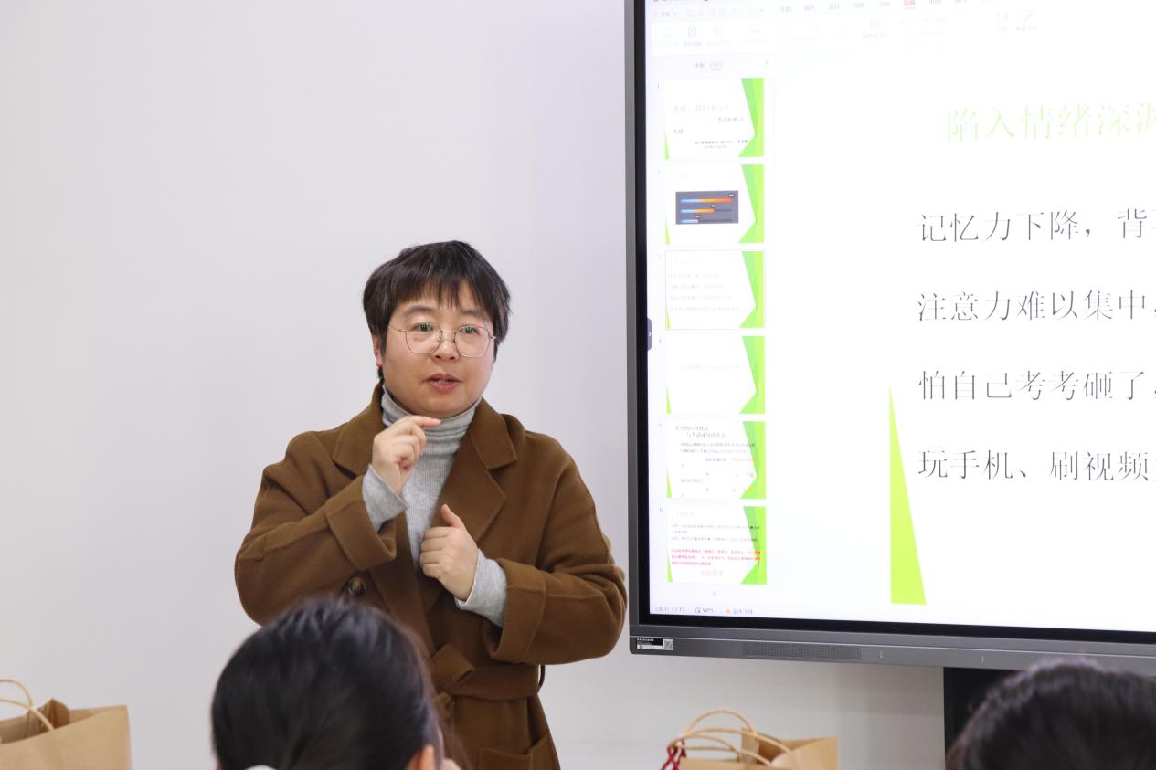 为了让大家以更加饱满的精神状态去参加考试,学院邀请到校心理健康中心蔡亚敏老师,来院为同学们作考前释压专题讲座。蔡亚敏结合众多以往考生的备考经历,分析考前焦虑情绪及压力的来源,鼓励大家正确面对焦虑和压力,坚持到底。她认为,平稳的心态在临考期间至关重要,同时分享了许多缓解心理压力的有效方法。