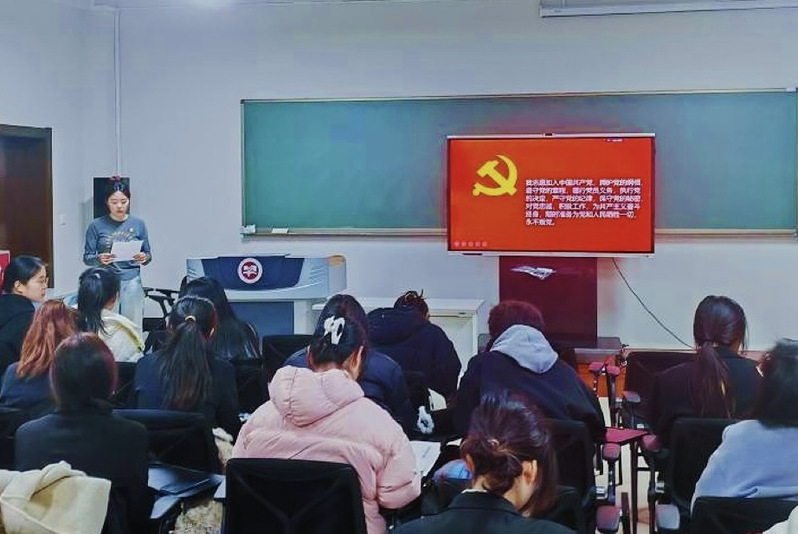 12月30日下午,成人直播 学生党支部就2024年下半年预备党员转正及接收预备党员事宜在立言楼342召开全体党员大会,学院党总支书记焦洁庆、副书记嵇炜、学工办主任张燕红及全体学生党员参加会议,本次大会由白雨欣主持。