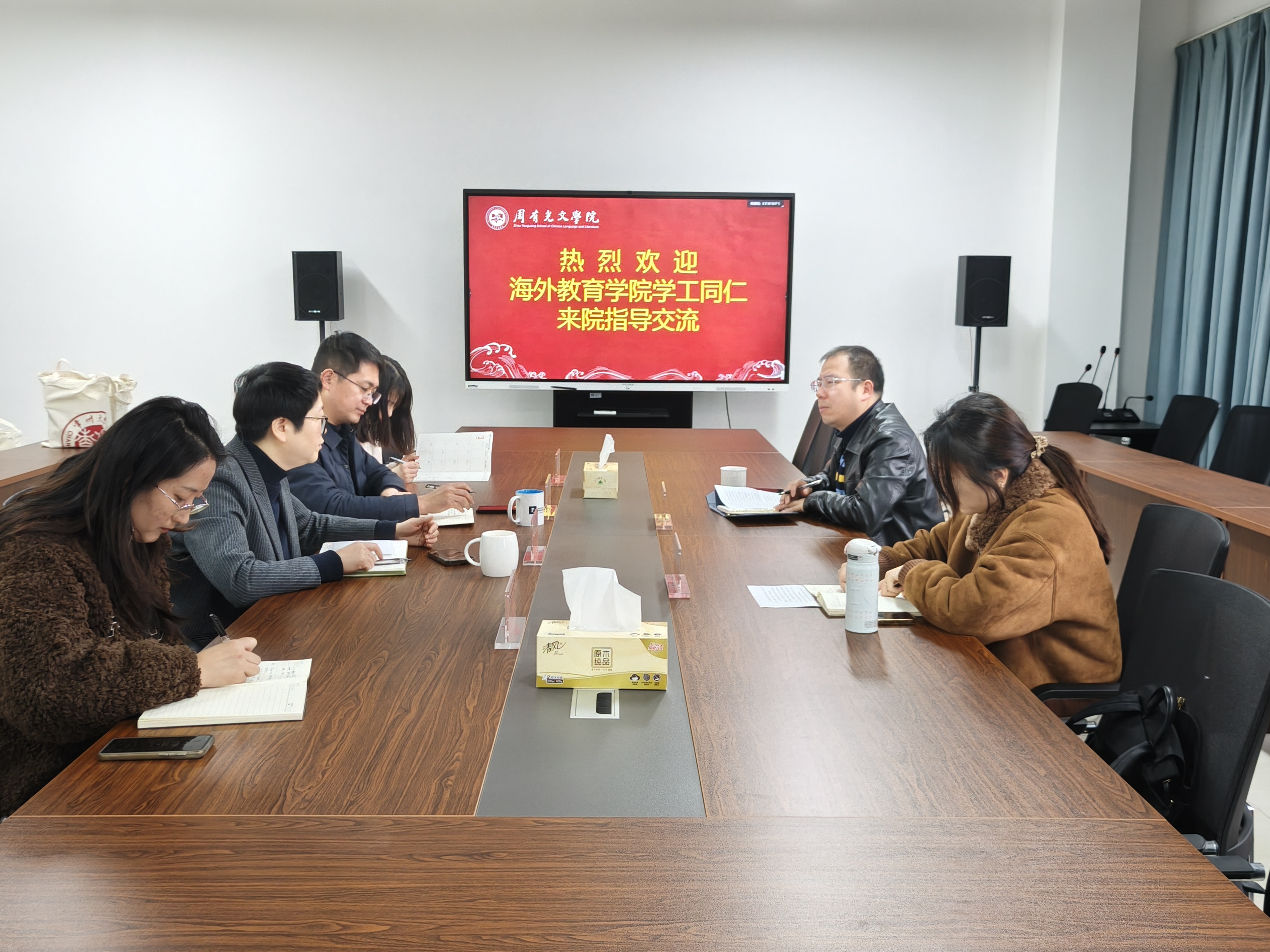 颜黎光则分享了海外教育学院党建工作情况与学生工作情况,他认为本次交流为学院党建工作提供了新思路,也为后续资源共享、协同创新奠定了坚实基础。
