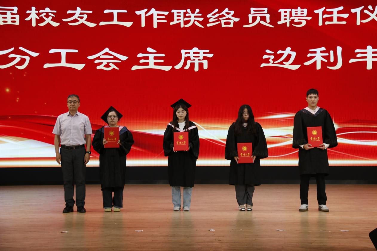 学院工会主席边利丰老师向毕业生代表颁发2025届校友工作联络员聘书。