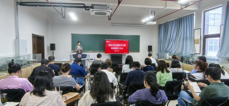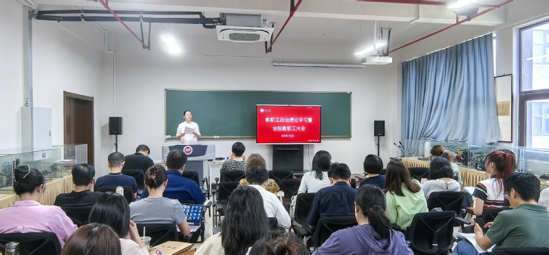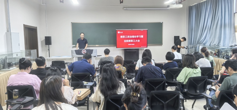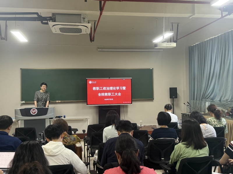 7月5日上午,成人直播 在立言楼342室召开教职工政治理论学习暨全院教职工大会,学院全体领导班子出席会议,全体教师参加会议,会议由院党委书记焦洁庆主持。