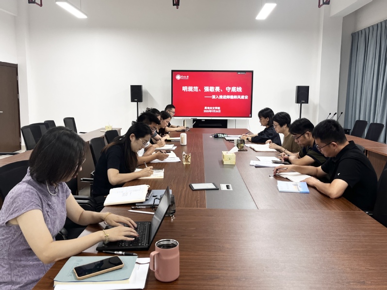 与此同时,苔岑雅集·教师工作坊和教学能力提升培训同步开展,助力教师将师德要求有机融入课堂教学,实现了师德修养与专业能力的双提升。在师德师风建设会上,强化制度学习,筑牢师德底线。集中学习了学校关于师德师风的政策文件、师德师风负面清单及相关法规制度。强调将师德考核纳入教师年度考核体系,与职称评审、岗位晋升、评优评先等直接挂钩。同时对本单位师德师风建设情况开展全面自查,落实师德师风建设情况半年报告制度。