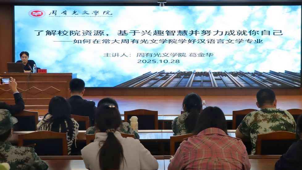 葛金华为全体2025级新生带来了一场内容丰富、意蕴深远的院史院情专题教育讲座。他以“了解校院资源,基于兴趣智慧并努力成就你自己——如何在常大成人直播 学好汉语言文学专业”为题,详细介绍了专业所属大类、学科体系、课程内容等,并就成人直播 汉语言文学专业的起源、学院发展历程、师资队伍、学科特色及发展规划进行了介绍。通过详实的史料与生动的故事,他将学院的“过去、现在与未来”详细阐述,使新生们对学院有了更为全面深入的了解,增强了新生作为学院一员的获得感与使命感。他还为新生们推荐了《史记》《数字交往论》《理解媒介》等多本书籍,鼓励同学们多读书、多思考、多写作,学会生产性学习、创作,努力成为一名“特别能写、能生产内容;特别能策划、能组织;特别有思想、有文化”的复合型人才。(通讯员/张燕红 审核/嵇炜)
