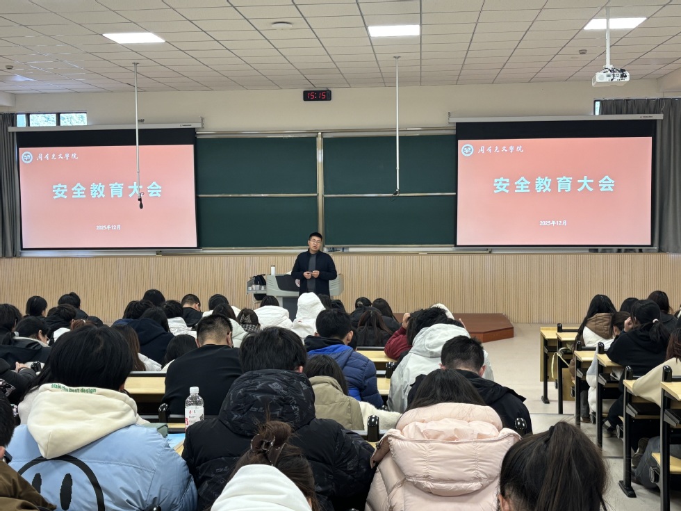 12月5日下午,成人直播 在立功楼三阶召开学生安全教育大会。本次大会由2025级年级辅导员程向君老师担任主讲,全体大一学生参加会议。