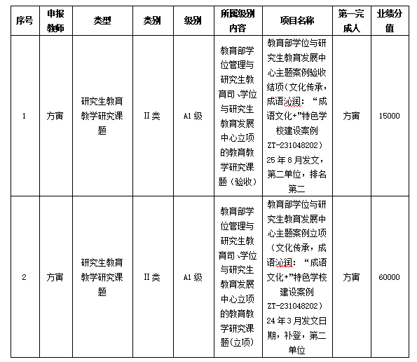 根据研究生院《关于统计2025年度研究生教研业绩分值的通知》要求,现将成人直播 2025年度研究生教研业绩统计结果予以公示。公示期自即日起三个工作日,如有异议,请在12月25日前联系赵老师(电话:88519880)。
