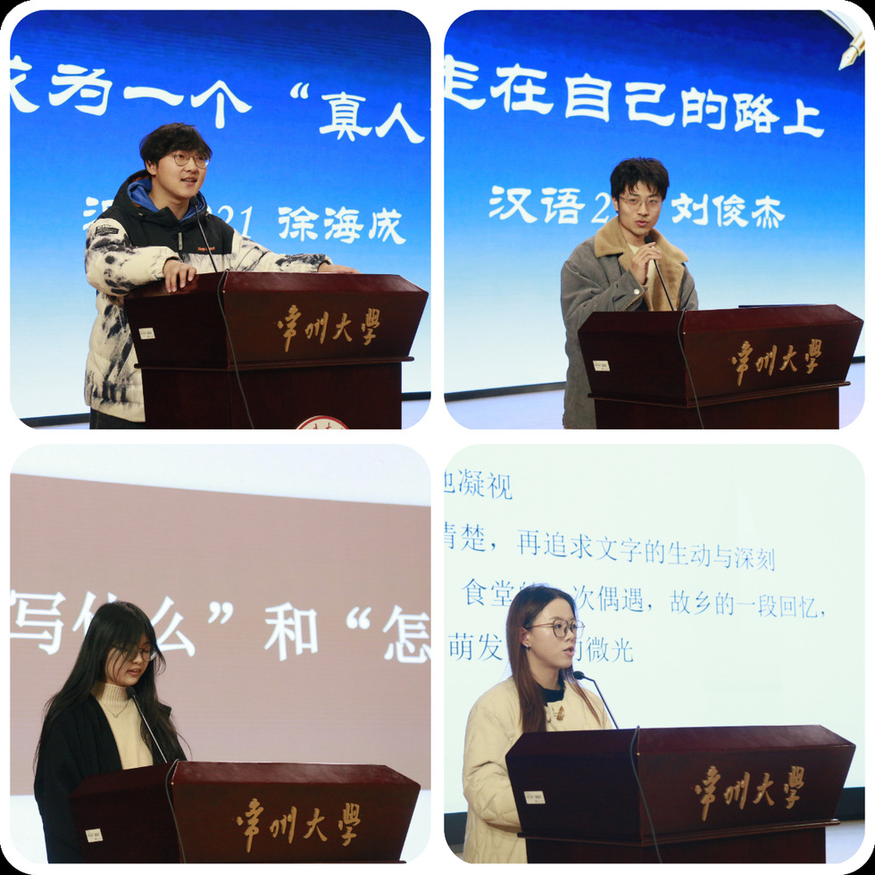 12月30日晚,成人直播 于立艺楼大礼堂成功举办“大文学”与“小作家”文学创作分享会暨“生产性学习与研究性写作”论文写作经验交流会。汉语221班徐海成、汉语222班刘俊杰、汉语236班祁亚敏、汉语244班朱宣宣四位同学结合自身实践,分享了文学创作的心得体会;汉语234班魏子默、吕鑫月、江菲与汉语233班罗茜四位同学则围绕论文写作进行经验交流。中文系主任贺与诤、文艺学与外国文学教研室教师朱明明应邀点评,院长葛金华作总结讲话。
