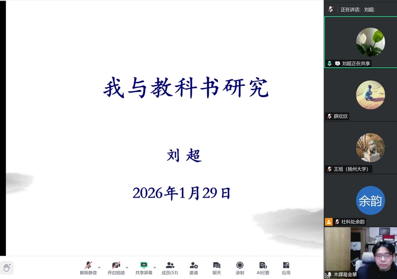 1月29日,成人直播 联合社科处在线上开展成人直播 第十七期学术工作坊“高水平人文学科研究的道与术”。成人直播 马克思主义学院刘超教授、扬州大学社会发展学院王旭副教授、成人直播 外国语学院王刚老师受邀作专题讲座。学院、社科处双方领导、负责人,学院各教研室教师及学生代表50余人参加讲座。院长葛金华主持讲座。