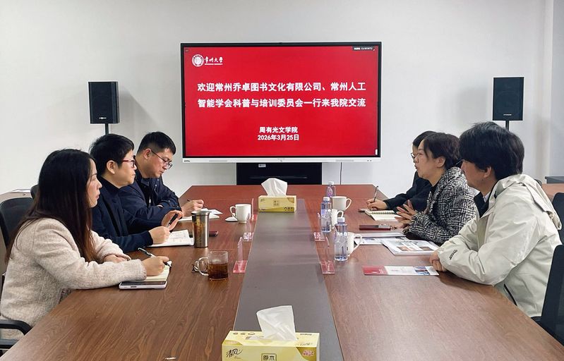3月25日上午,常州乔卓图书文化有限公司总经理倪静、常州人工智能学会科普与培训委员会主任汪斌一行来成人直播 交流。学院党委书记焦洁庆、党委副书记嵇炜、毕业班辅导员张燕红参加会议。