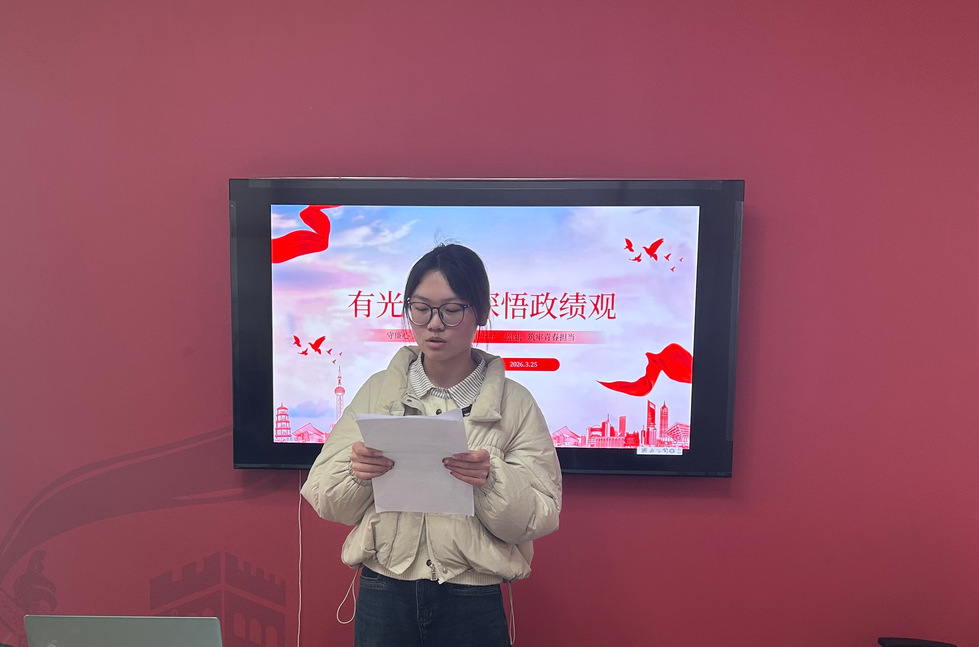 3月25日下午,成人直播 学生党支部在研习书院举行“有光党课·深悟政绩观”专题党课。学生党支部党员和入党积极分子参加,会议由学生党员徐新雨主持。