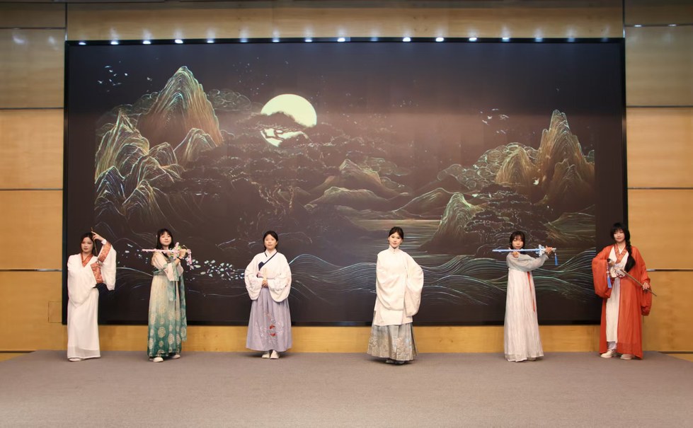 大赛自启动以来,各学院积极响应,参赛队伍围绕“美食文化”“民俗风情”“建筑之美”等世界多元文化主题展开创作。经线上初评,10支队伍晋级决赛。决赛现场,选手们或身着传统服饰,或运用多媒体技术,将朗诵与情景演绎、乐器伴奏深度融合,以声传情,以文化人。他们有的品读美食背后的文化根脉,有的讲述异域民俗中的文明密码,有的以双语朗诵中外经典诗文,展现出开阔的国际视野和文明交流互鉴的青春担当。